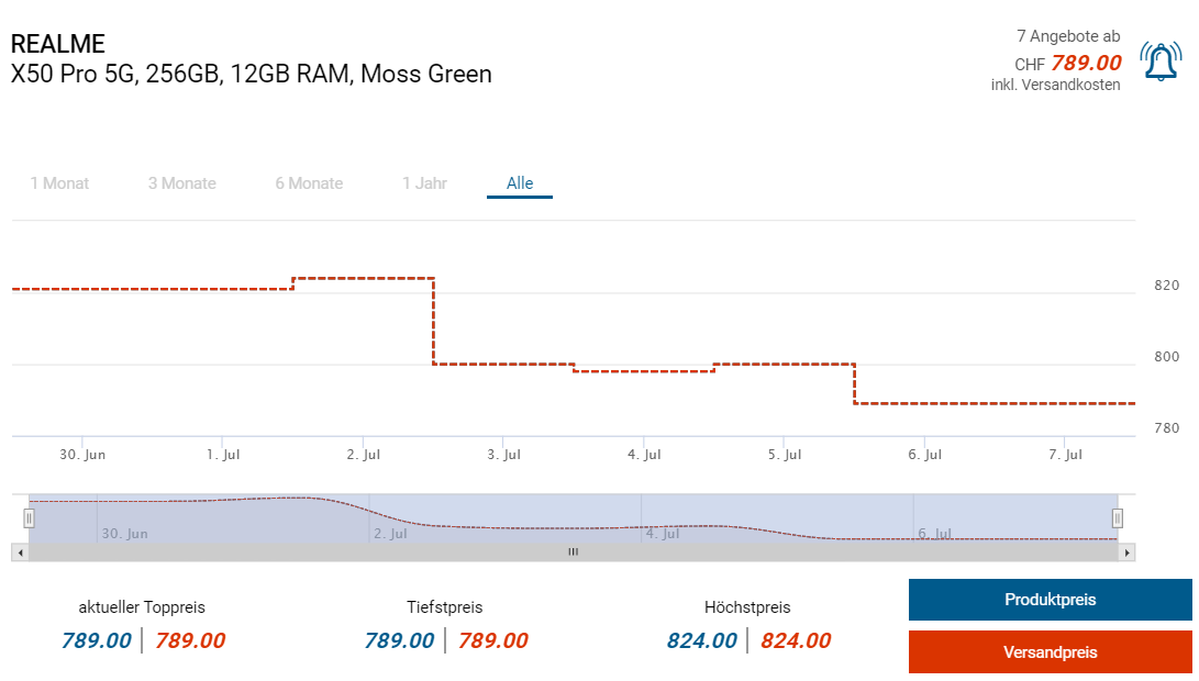 Bei Amazon Spanien gibts gerade das 5G-Smartphone Realme X50 Pro in der Farbvariante Moss Green zum Preis von 645 Franken zu kaufen. Die Farbe Rust Red gibts derzeit wohl für Prime Mitglieder noch viel günstiger, da ich aber selbst keine Mitgliedschaft habe weiss ich nicht, ob es dann in die Schweiz lieferbar wäre (und ob der Preis steuerbezogen gesenkt wird).