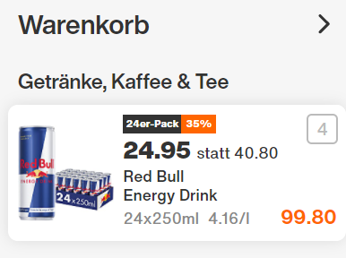 Red Bull gibt es immer mal wieder in Aktion (meistens jedoch nie, wenn man sie gerade kaufen möchte). So kriegt man diese gerade bei Migros für CHF 24.95.