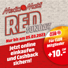 Die Red Sunday Aktion läuft wieder bei MediaMarkt! So profitiert ihr bei jedem Einkauf ab CHF 250.- von einem attraktiven Gutschein oben drauf! Für alle CLUB Mitglieder gibt es CHF 10.- Extra als Guthaben!