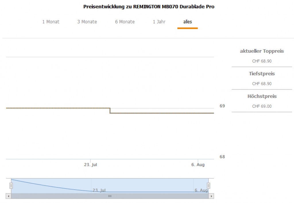 Gemäss toppreise gab es den Bartschneider bislang noch nie günstiger als für 68.90 CHF was aktuell auch der zweitbeste Preis ist.
