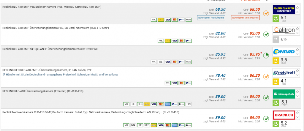 Reolink kauft man bei ihnen selber und nicht hier in der Schweiz.