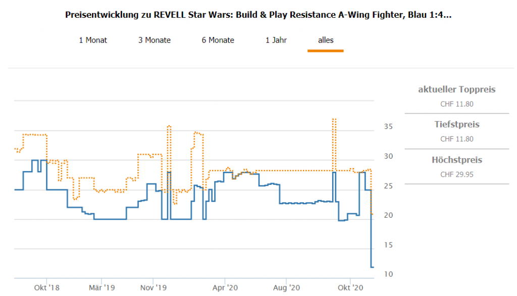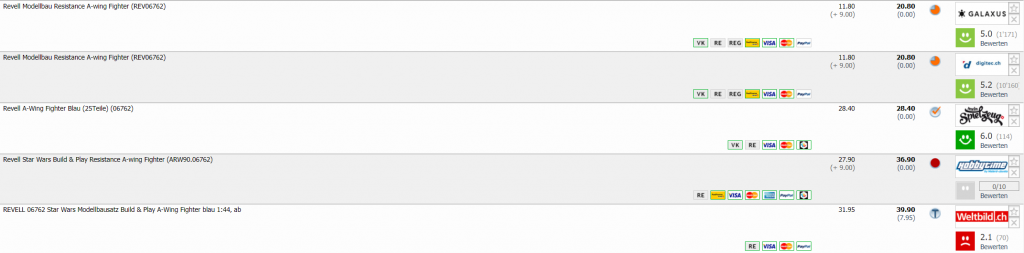 Für M-Plus Mitglieder (gab’s kürzlich ja einen Monat gratis, ich hoffe, ihr habt zugeschlagen!) gibt’s bei digitec/Galaxus gerade den Revell Resistance A-wing Fighter für CHF 11.80 Für alle anderen kommt ein Mindermengenzuschlag von 9 Franken auf den Preis obendrauf.