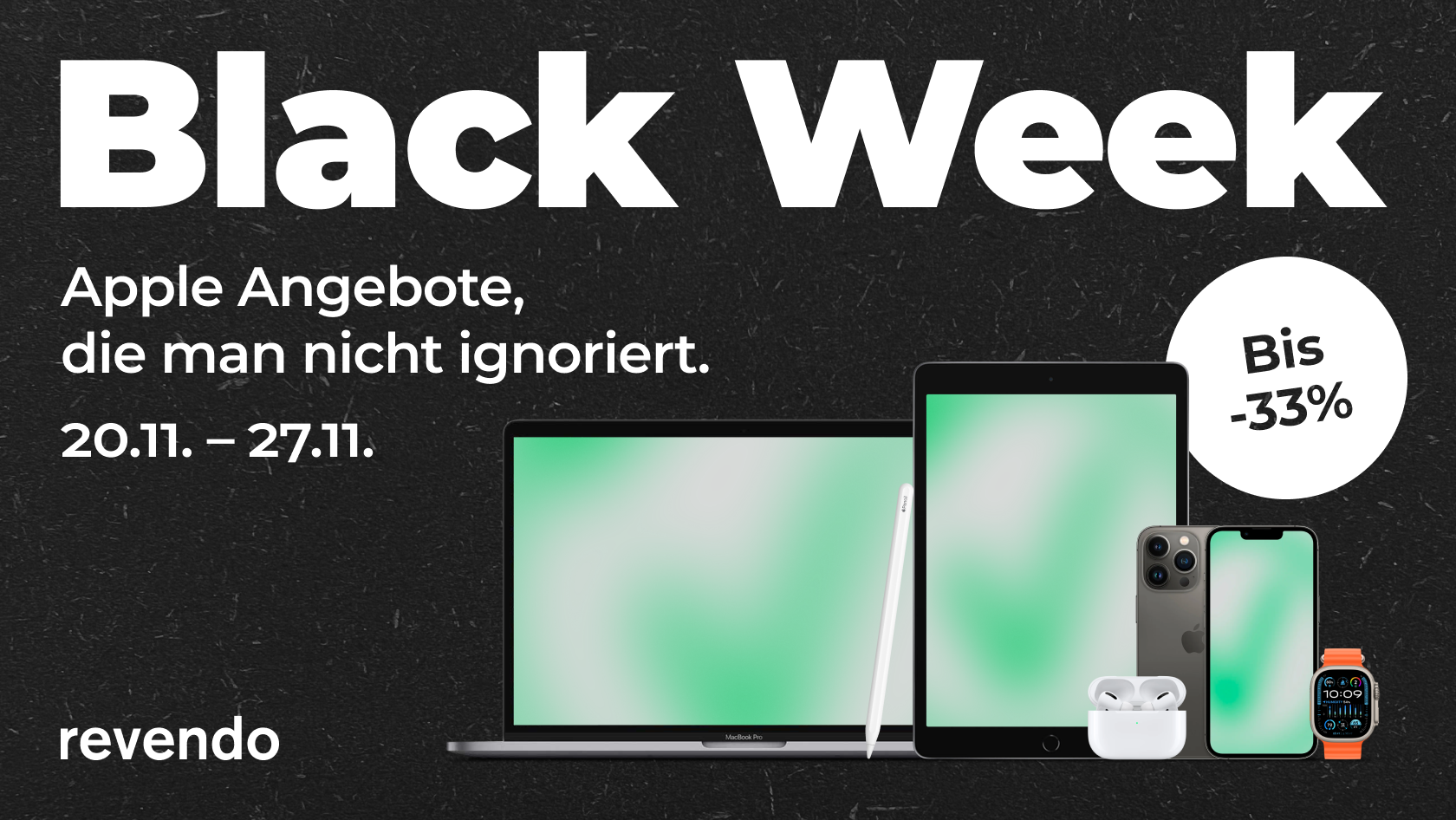 Sichere dir jetzt bei Revendo erstklassig aufbereitete Apple-Geräte bis zu 33% günstiger! Klick & spar zur Black Week!