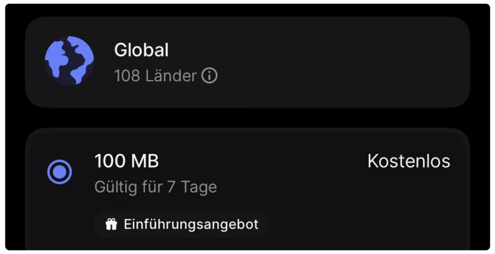100 MB wahrscheinlich nur für Leute die doch nicht ganz offline sein wollen oder genügt sicherlich um kurz einen günstigen eSIM Anbieter im Internet zu suchen, falls dies vor Abreise vergessen ging.