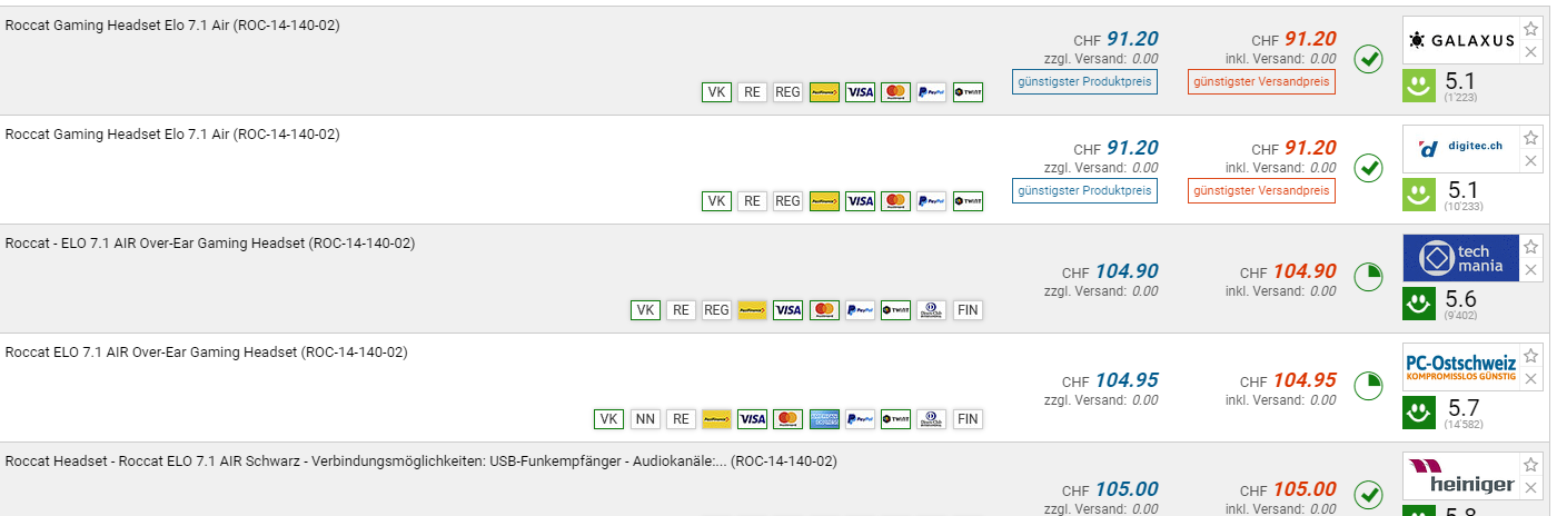 Bei digitec und dem Partner Galaxus gibt es das ROCCAT Elo 7.1 Air Headset wieder für den Bestpreis von CHF 91.20. Im Februar gab es diesen Preis schon einmal. Der zweitbeste Preis beträgt CHF 104.90.