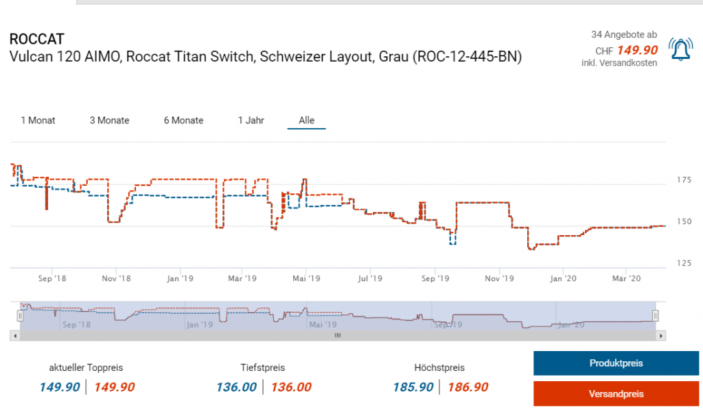 Bei amazon.de gibts gerade die mechanische Gaming-Tastatur Roccat Vulcan 120 zum neuen Bestpreis. Dieser lag in der Schweiz bisher bei 136 Franken, amazon unterbietet diesen um 9 Franken. Im Vergleich zu einem konkurrierenden Händler erspart ihr euch sogar etwa 22 Franken!