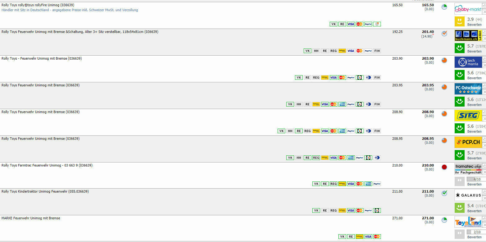 Bei baby-markt.ch gibt es aktuell den rolly®toys rollyFire Unimog für CHF 165.50. Das ist laut toppreise.ch der bisher günstigste Preis für das Kinderfahrzeug, und der aktuelle Vergleichspreis liegt bei CHF 201.40 inklusive Versandkosten.