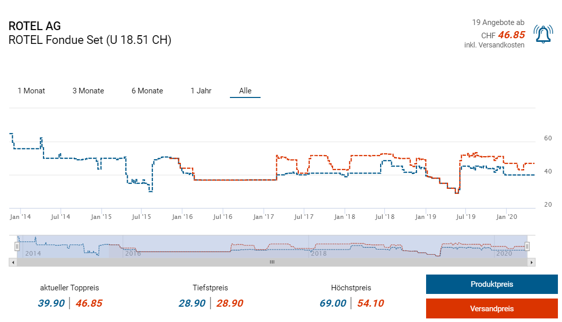 Bei nettoshop gibts gerade das Fondue-Set von Rotel mit 6 Gabeln zum guten Preis. Es kommt zwar nicht an den Bestpreis von CHF 28.90 letzten Sommer ran, im Moment ists dennoch ein Deal, wenn man die Preiskurve betrachtet.
