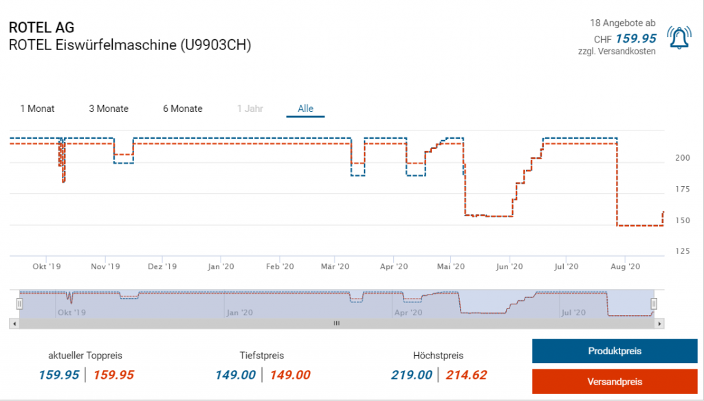 Bei nettoshop gibts heute im Tagesangebot die Eiswürfelmaschine U9903CH von Rotel zum neuen Bestpreis von 129 Franken wenn man den bekannten 10 Franken Bon anwendet. Ab dem 1.9. würde das Gerät wieder 139 Franken kosten, da dann der Gutschein abläuft. Der bisherige Bestpreis lag laut toppreise bei 149 Franken.