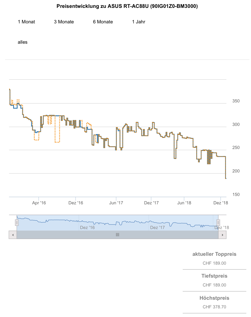 Gemäss toppreise war der bestprice bislang bei 220.35 CHF, der zweitbeste Preis liegt aktuell bei 227.20 CHF.