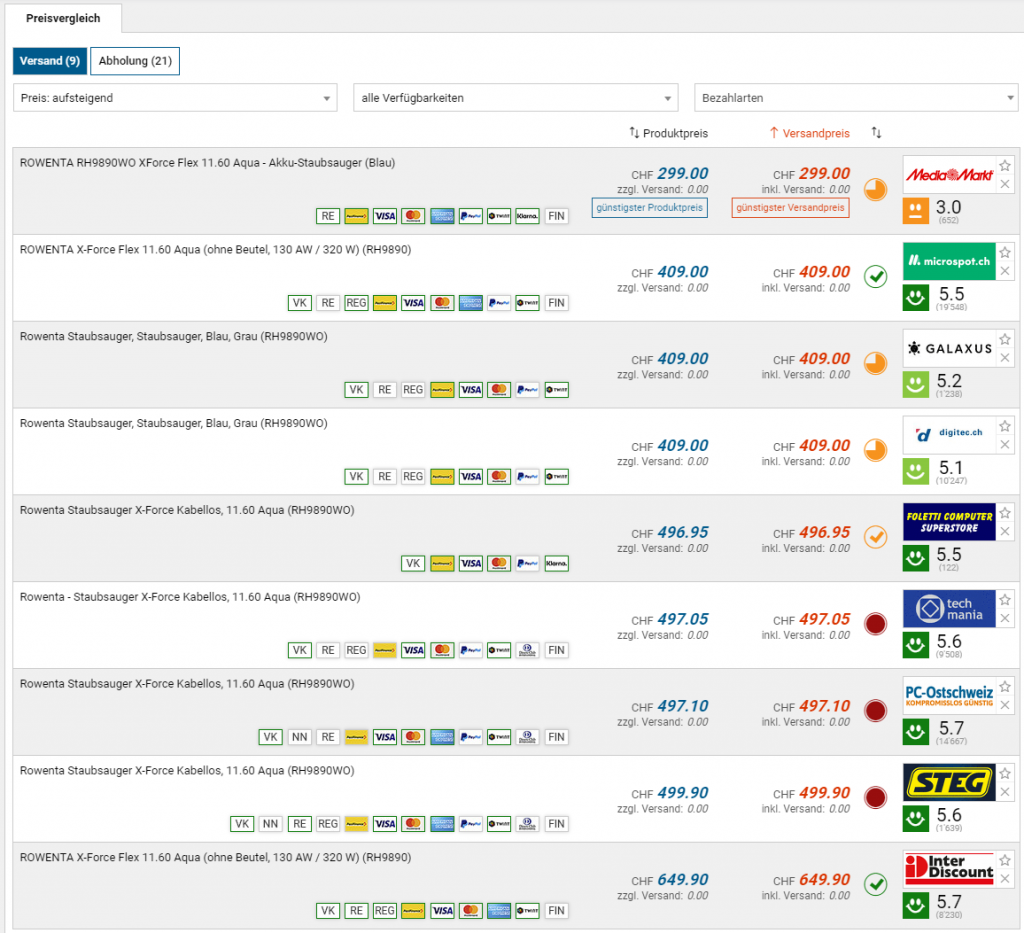 Bei Mediamarkt gibts derzeit den kabellosen Staubsauger Rowenta XForce Flex 11.60 Aqua zum neuen Bestpreis von unter 300 Franken. Club-Mitglieder (kostenlose Registrierung) kriegen den Staubsauger sogar für CHF 254.15 (Rabatt wird an der Kasse abgezogen)! Ausserdem könnt ihr von einer Geld-zurück-Garantie profitieren, sofern ihr nicht zufrieden seid.