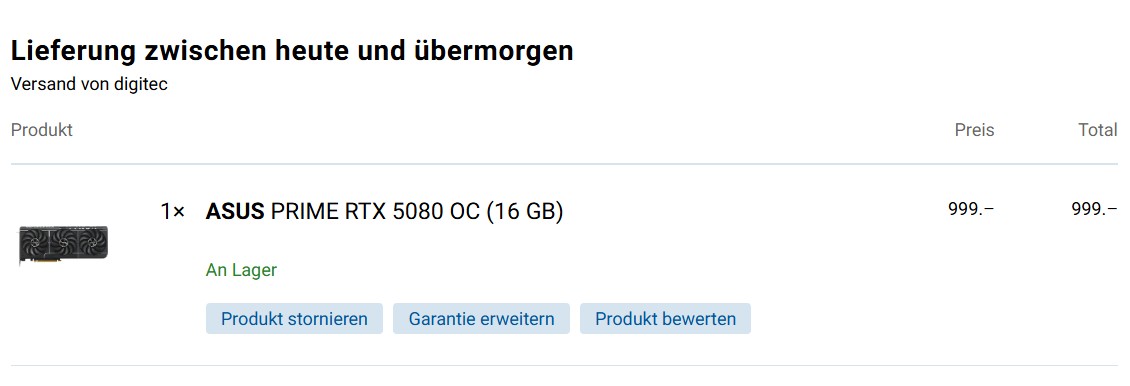 Hier auch storniert… dann wirds halt vielleicht doch eine AMD RX 9070 XT wenn die im März raus kommt zum voraussichtlich einiges günstigeren Preis 😉