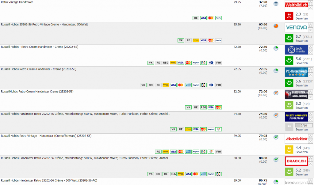Bei Weltbild erhält man gerade den RUSSELL HOBBS Retro Vintage Cream Handmixer zum Bestpreis von CHF 37.90 inkl. Lieferung. Zweitbester Preis beträgt CHF 65.90