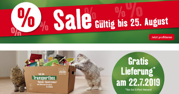 Bis zum 25.8.2019 läuft bei Fressnapf der Summer-Sale mit vielen rabattierten Produkten. Zudem kann man nur heute (22.7.2019) portofrei per B-Post bestellen.