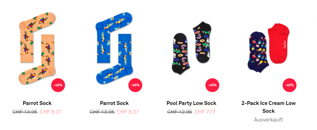 Auch bei Happy Socks ist der Sale gestartet. Bis Ende Monat gibt’s bis zu 40% Rabatt auf eine grosse Auswahl an Socken mit speziellen Mustern.