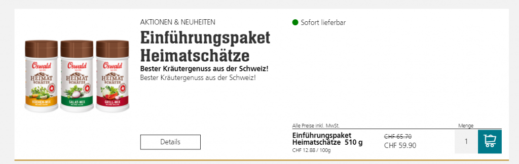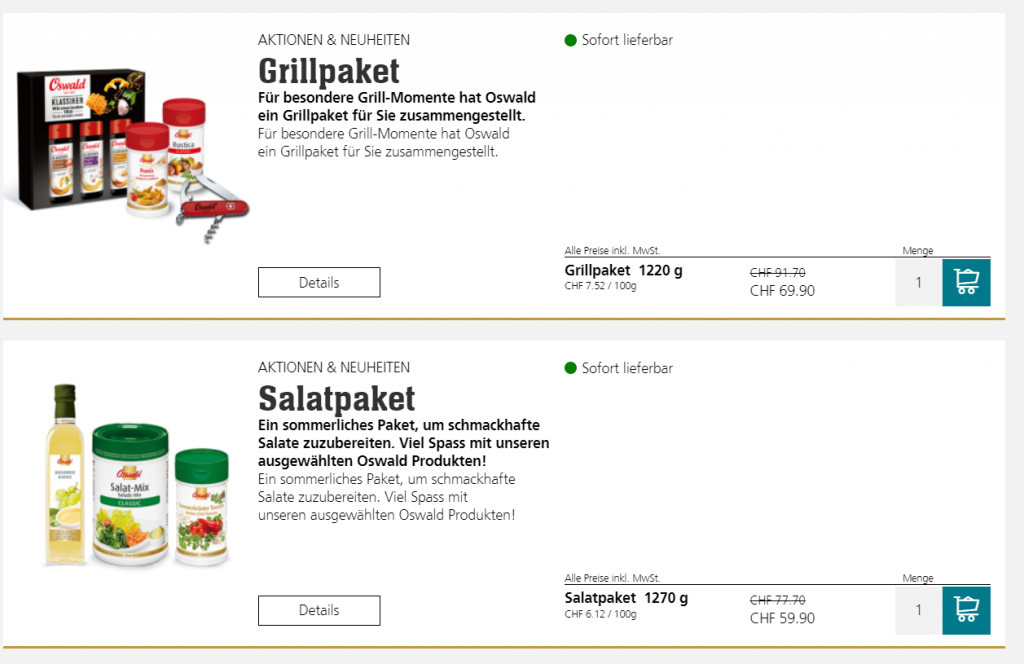Bei OSWALD gibt’s derzeit verschiedene Gewürze und Ice Tea im SALE. Ja, ist immer noch eher teuer, aber viele Leute schwören auf die Gewürze von Oswald…