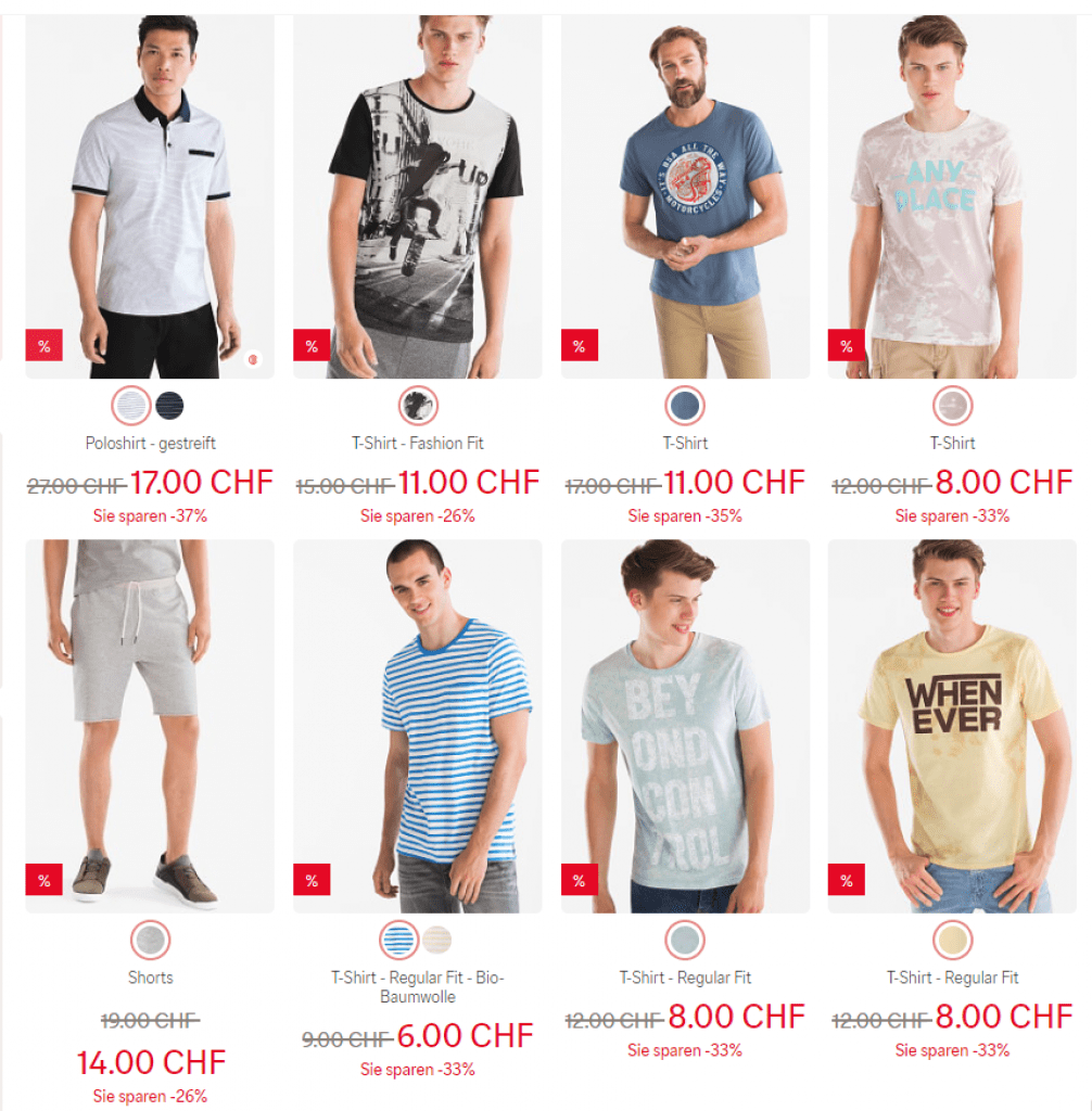 Bei C&A hat heute der Ausverkauf begonnen. Es gibt eine grosse Auswahl an reduzierten Artikeln. Das beste daran: Bevor der Sommer so richtig los geht, sind nun bereits viele Sommerartikel mit hohen Rabatten erhältlich. Ob T-Shirts, Röcke oder kurze Hosen. Zudem ist bis Morgen Dienstag der Versand bei C&A gratis. Die Mindestbestellmenge beim C&A Onlineshop beträgt 19 Franken.
