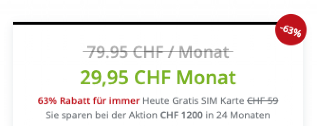 CHF 29.95 / Mt. CHF 79.95 / Mt. -63% Zum Deal