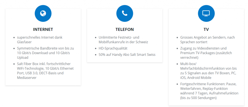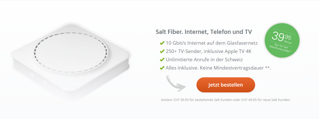 • Salt-Kunden mit Salt Swiss, Smart Swiss, Europe oder World Abo bezahlen CHF 39.95 für Salt Fiber