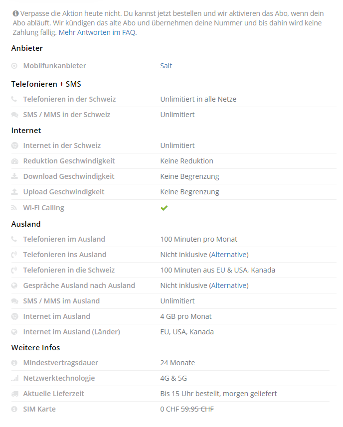 Dito. Ist leider so bei Salt. Beim Mobile sind die ei eine Katastrophe. Aber beim Glasfaser Internet dafür top.