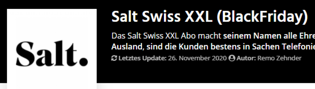 Bei handy-abovergleich gibt es zum Black Friday den Salt Swiss XXL Tarif stark vergünstigt.
