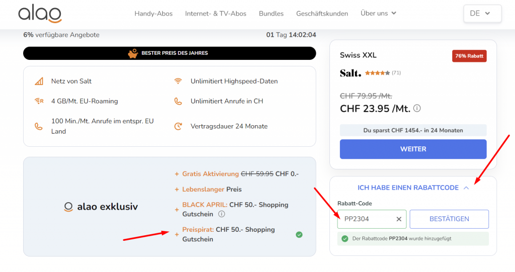 Dort gibt es 75.- CHF Shoppingutscheine über die TWINT Aktion dazu, sowie mit dem Code PP2304 nochmals 50.- obendrauf, also Total 125.- CHF an Gutscheinen.
