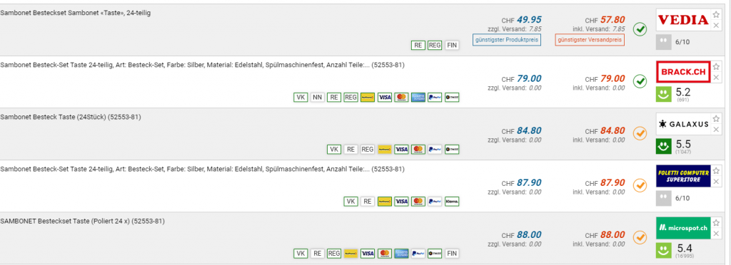 Bei Vedia gibt es das SAMBONET Taste Besteck-Set, 24-Teilig für den neuen Bestpreis von CHF 57.80. Der vorherige Bestpreis was CHF 59.-. Der zweitbeste Preis beträgt CHF 79.-.