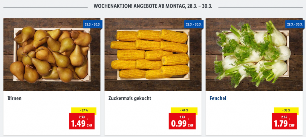 Ab morgen gibt’s dann bis zum 26.3. 500g Erdbeeren für 1.49 Franken, Butternuss-Kürbisse für 89 Rappen pro kg sowie Blumenkohl für 1.49 pro kg (alternativ bei Coop 500g für 90 Rappen).