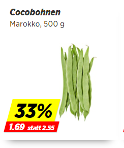 Als „Wochenend-Knaller“ verkauft Coop noch vom 17.3.-19.3. Cocobohnen à 500g für 1.69 Franken