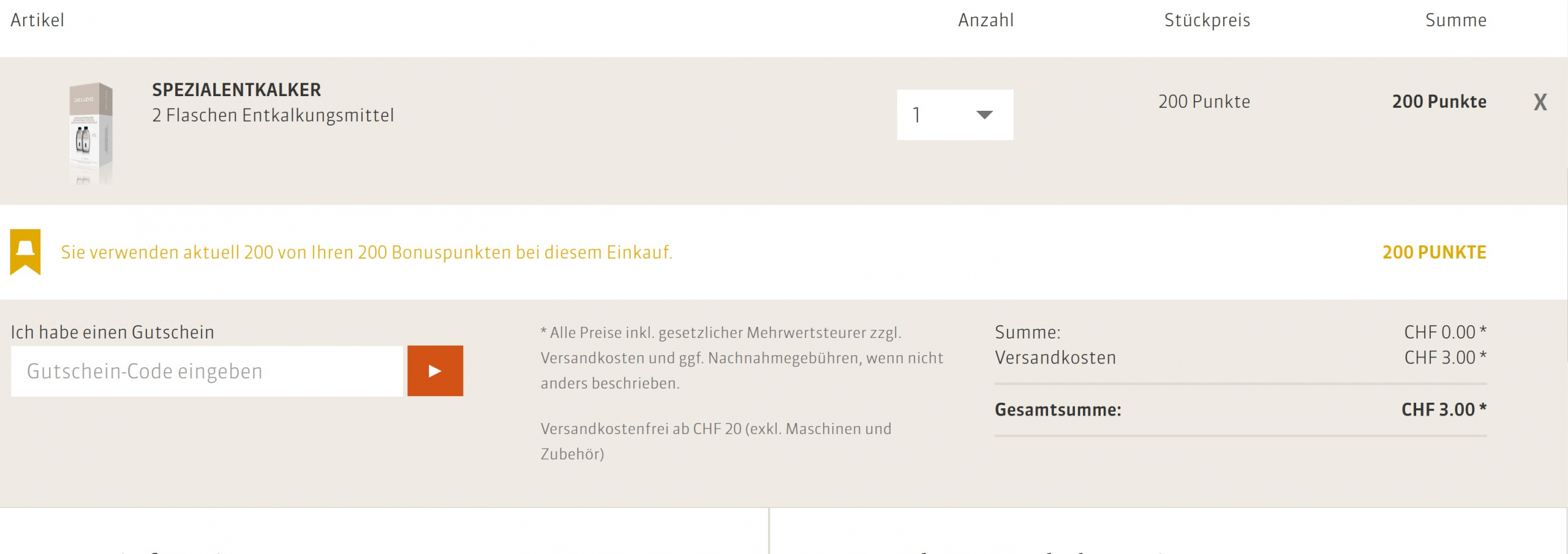 Also mir werden 3 CHF Versandkosten angezeigt...