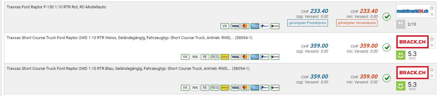 TRAXXAS 1:10 Ford F-150 Raptor (CHF 233.40 zweitbeste: CHF 359.-)