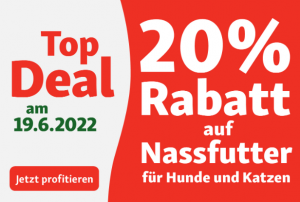 20% auf Nassfutter für Hunde und Katzen bei Fressnapf. Die Preise sind im Shop angepasst, daher wird kein Code benötigt.