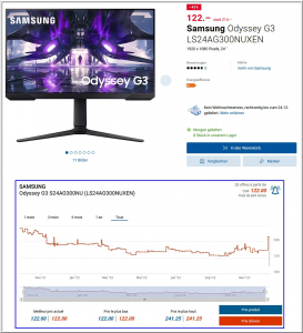 Neu best Preis (122 Frs) für Samsung Odyssey G3 LS24AG300NUXEN mit Digitec (link).Bildwiederholfrequenz: 144 Hz