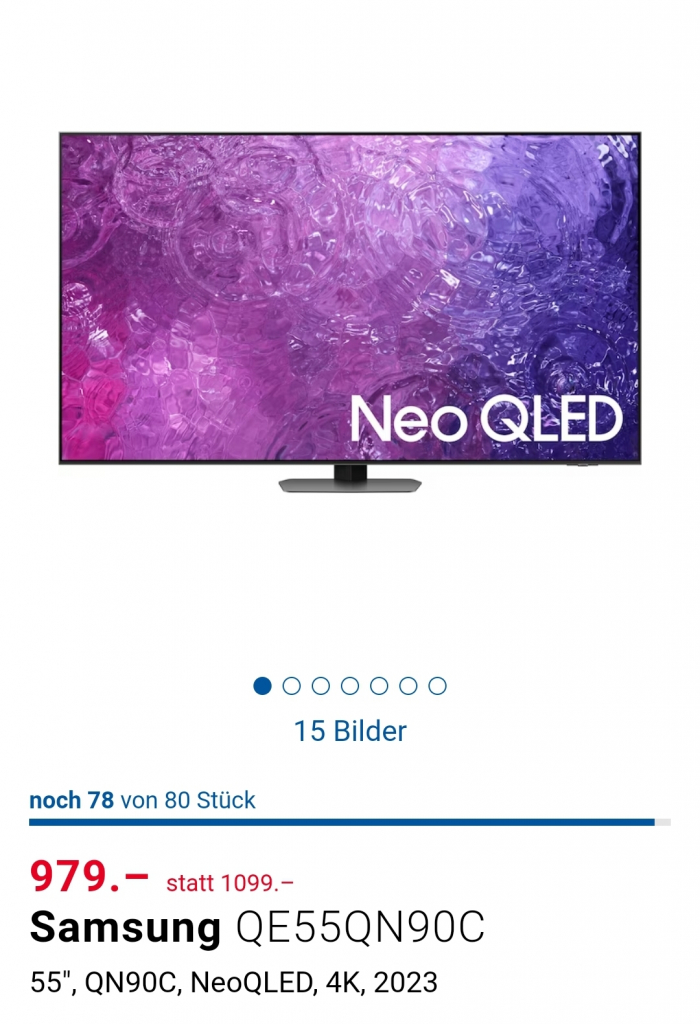 Bei Digitec gibt es aktuell noch 78 Stk. des 55QN90C für 979.- im Deal.