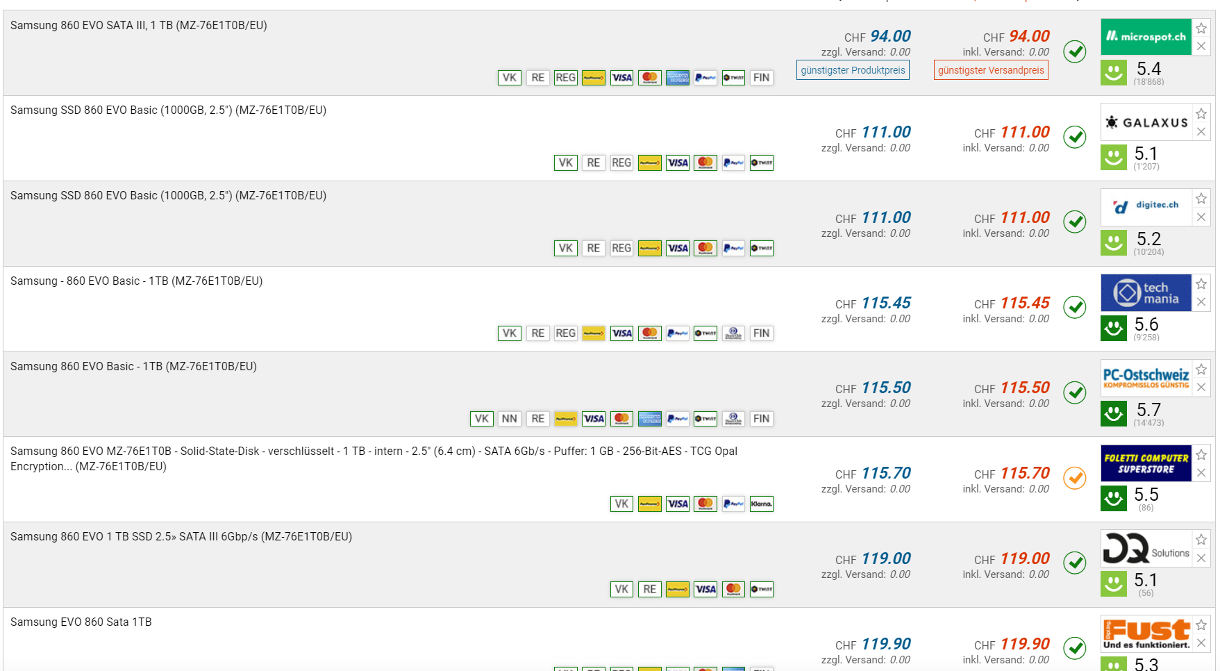 JA, es gibt billigere SSDs von Samsung - die Arbeiten aber mit QVD, einer komplett anderen Technologie, welche weniger Leistung bring und vor allem weniger Lebensdauer (ca 350 TB) - die 870 QVD hat deswegen auch nur 3 Jahre Garantie. Samsung weiss warum ;-)