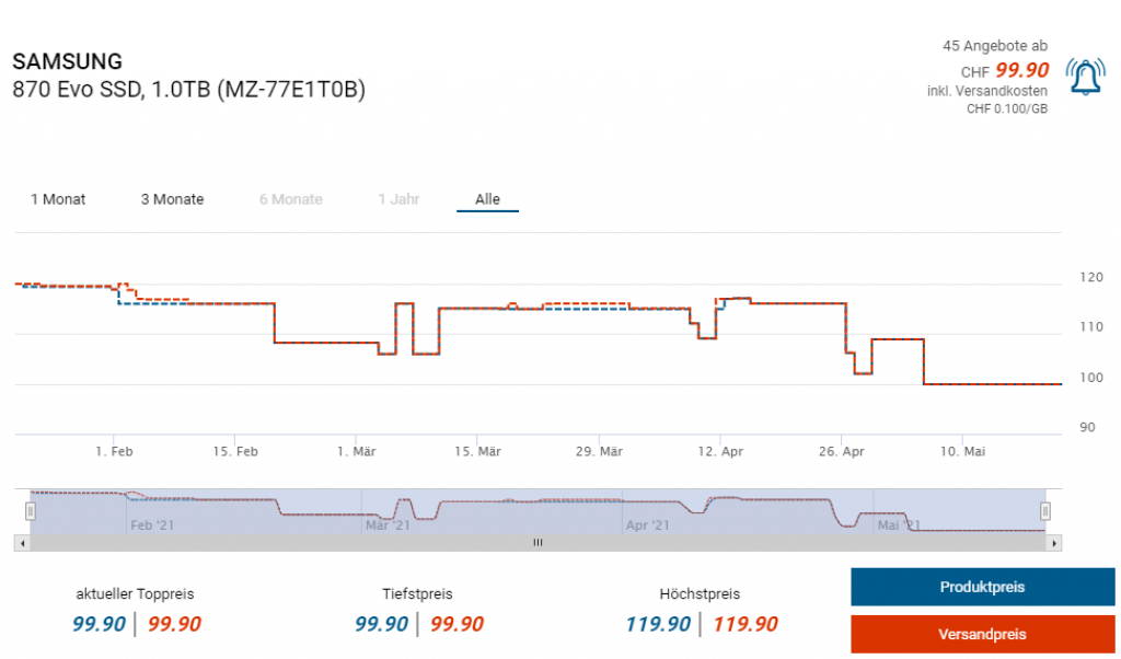 April 2018 noch 296 CHF bezahlt für eine Samsung 1 TB ;)