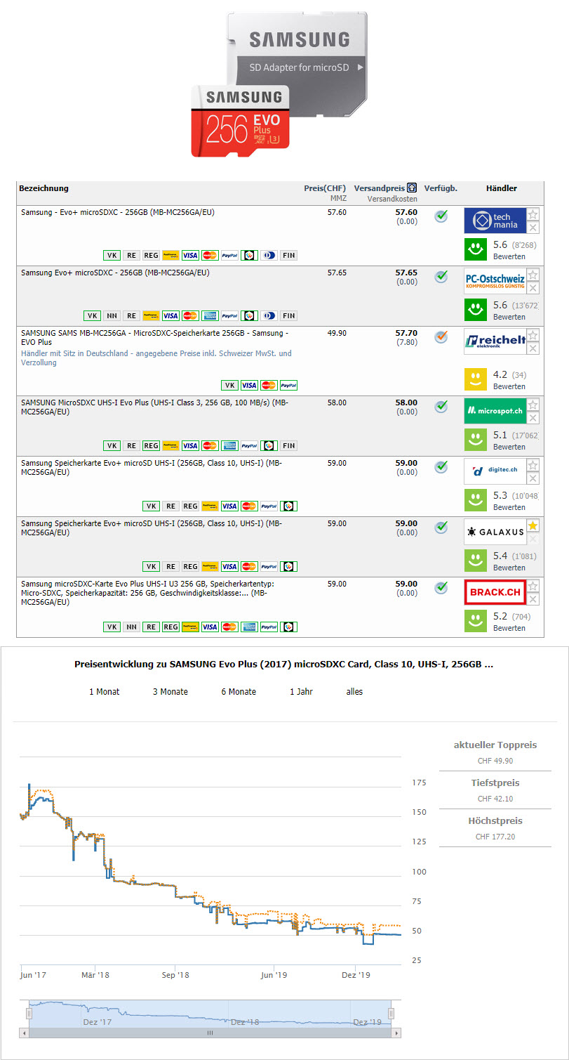 Beim Blick Top-Deal gibt es diese Woche solange Vorrat die Samsung Evo Plus 256 GB (microSDXC-Karte) zum Bestpreis von CHF 39.-.