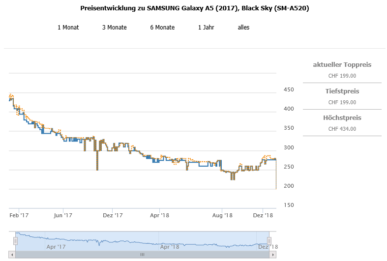 Bei interdiscount gibt es aktuell das SAMSUNG Galaxy A5 (2017), Black Sky für 199.- CHF.