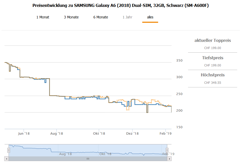 Gemäss toppreise war der bestprice bislang bei 199.- CHF, der zweitbeste Preis liegt aktuell bei 218.90 CHF.