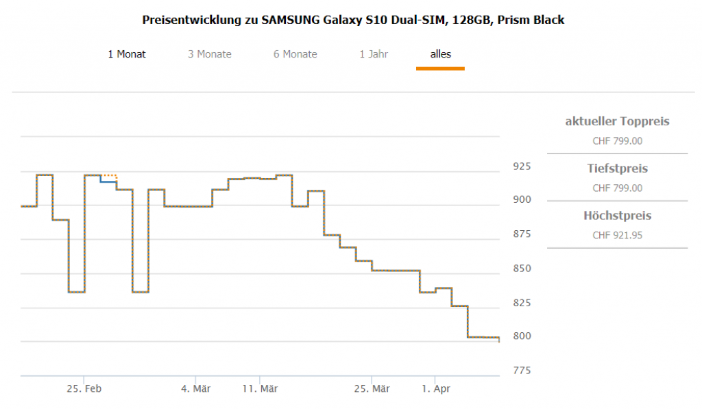Zweitbester Preis im Moment beträgt CHF 802.90 Laut toppreise handelt es sich dabei um den neuen Bestpreis.