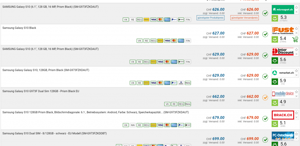 Bei Fust gibt’s das Samsung Galaxy S10 derzeit für CHF 627.- Mit Gutscheincode 1119RM sogar für CHF 607.-