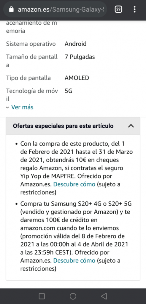 Bei Amazon Spanien gibts derzeit das Samsung Galaxy S20+ ohne 5G-Modul zum Aktionspreis von 538 Franken. Mit dabei ist ausserdem ein Gutschein im Wert von 100€, den ihr 30 Tage nach dem Kauf erhaltet. Die Aktion dazu wird aber nur in der App resp. im Mobilbrowser angezeigt.