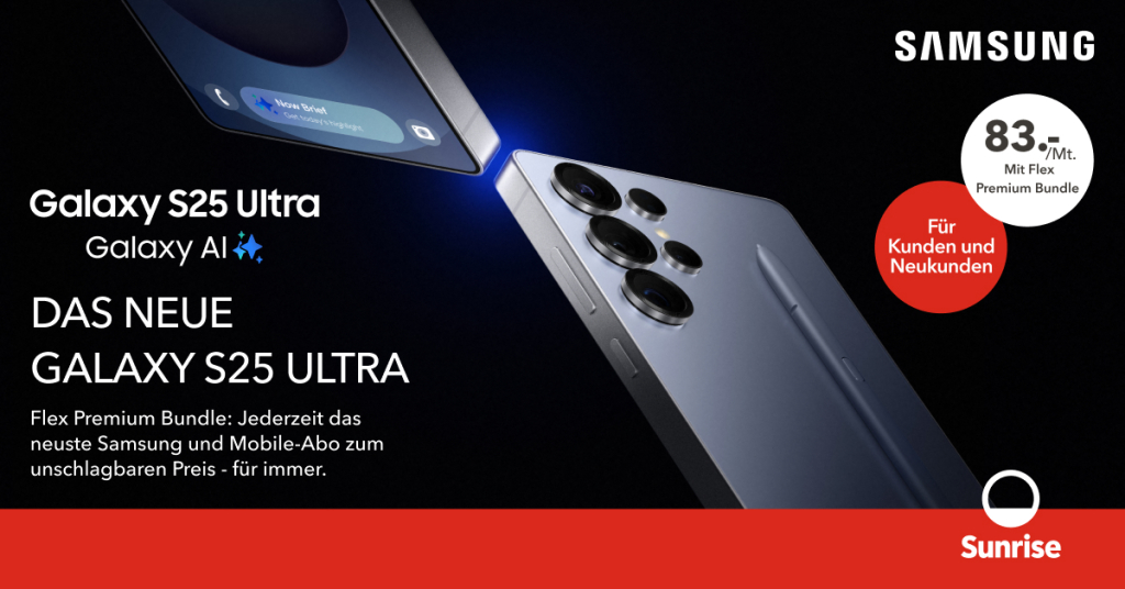 Mit dem Flex Premium Bundle sicherst du dir das Samsung Galaxy S25 Ultra zusammen mit einem attraktiven Mobile-Abo – ein Angebot für alle, egal ob neue oder bestehende Kunden. Zusätzlich profitierst du von exklusiven Vorteilen.