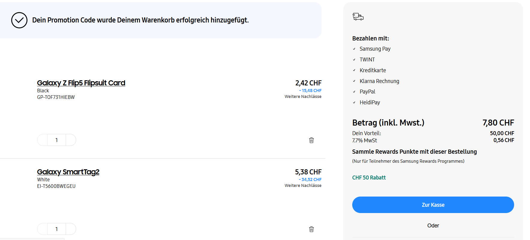 Galazy Z Flip5 Flipsuit Card für hinzufügen und man zahlt noch CHF 7.80
