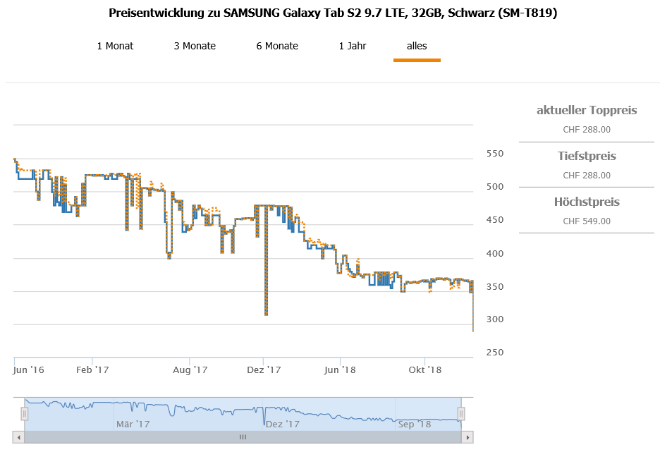 Bei digitec gibt es aktuell das SAMSUNG Galaxy Tab S2 9.7 LTE mit 32GB in Schwarz für 288.- CHF.