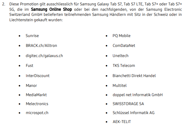 Bei Samsung läuft derzeit eine neue Promotion wo ihr mit schönen Goodies eingedeckt werdet, wenn ihr ein Samsung Galaxy Tab S7 oder S7+ bei einem teilnehmenden Händler einkauft. Spontan habe ich z.B. bei microspot/Brack das Galaxy Tab S7 in schwarzer Farbe für CHF 599.- gefunden, vielleicht wäre es aber klüger auf eine Aktion zu warten.