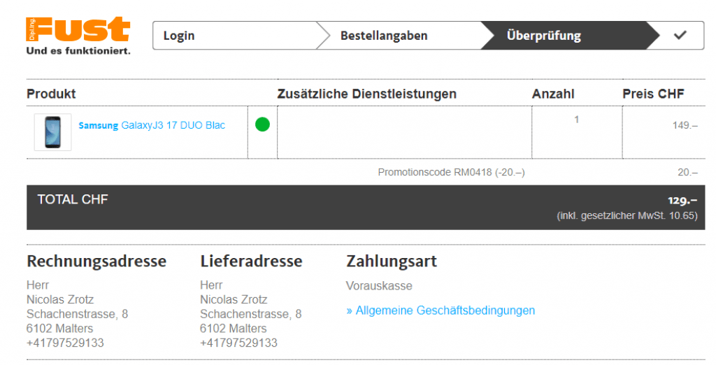 Einfach Smartphone in den Warenkorb schmeissen und den Code RM0418 eintippen um 20CHF Rabatt zu bekommen. -> Einfach nicht vergessen die Transportversicherung zu löschen 🙂