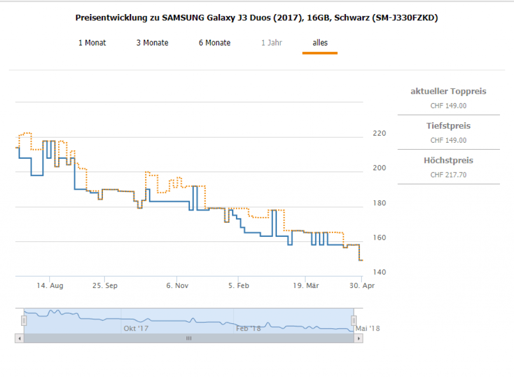 Das Samsung Galaxy J3 ist natürlich ein LowCost Gerät. Aber ich muss wirklich sagen für den Preis ein Top Einsteiger Smartphone z.B. als erstes Handy für die Kids optimal geeignet! Günstiger als für 149 CHF hat es das Gerät noch nie gegeben. Der zweitbeste Preis aktuell liegt bei 163 CHF. Ihr kommt aber sogar auf 129 CHF!