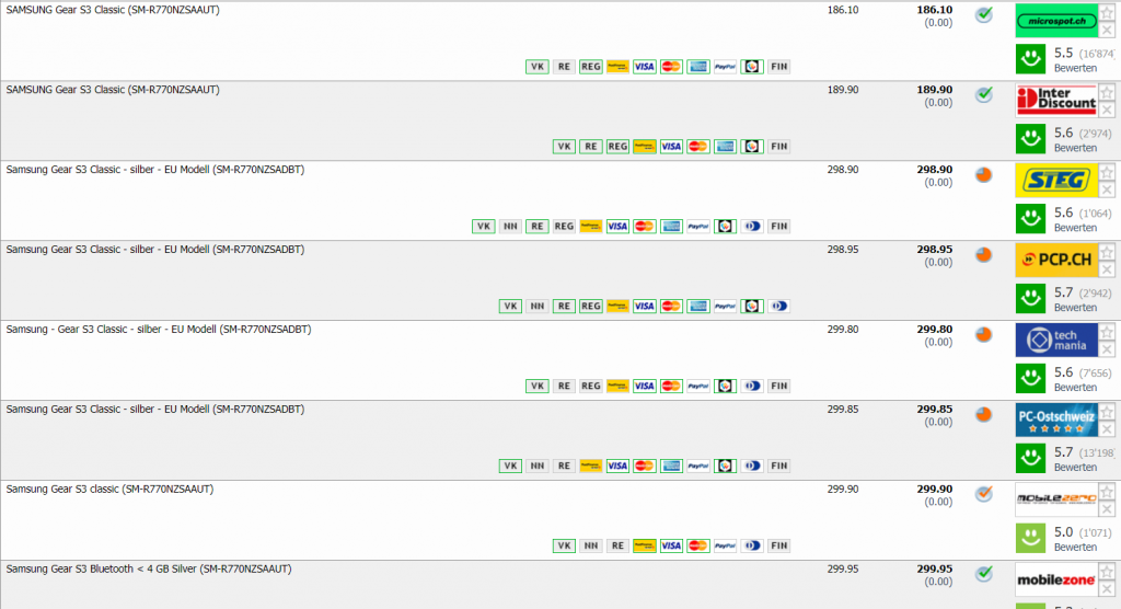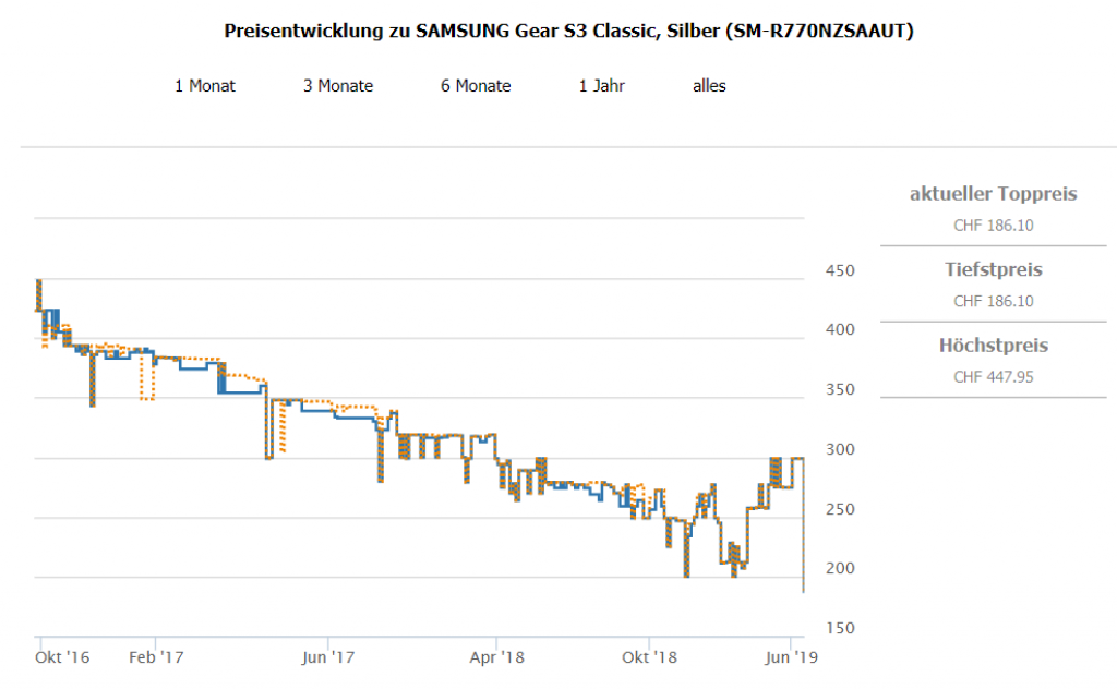 Bei Interdiscount erhält man gerade die Samsung Gear S3 Classic Smartwatch für CHF 189.90. Zweitbester Preis liegt bei CHF 298.90 Bestpreis war bei CHF 199.90 Laut toppreise bei microspot noch minim günstiger verfügbar, dort aber schon ausverkauft. Dürfte auch bei ID nur in sehr kleiner Stückzahl vorhanden sein.