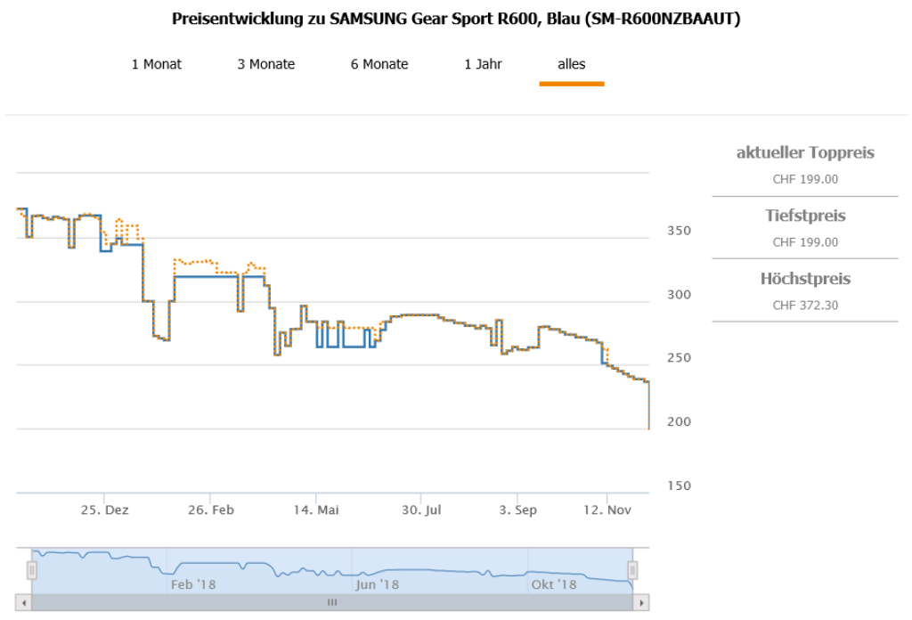 Bestprice mit Gutscheinabzug waren bislang 221.90 CHF, der zweitbeste Preis aktuell liegt bei 238.70 CHF.